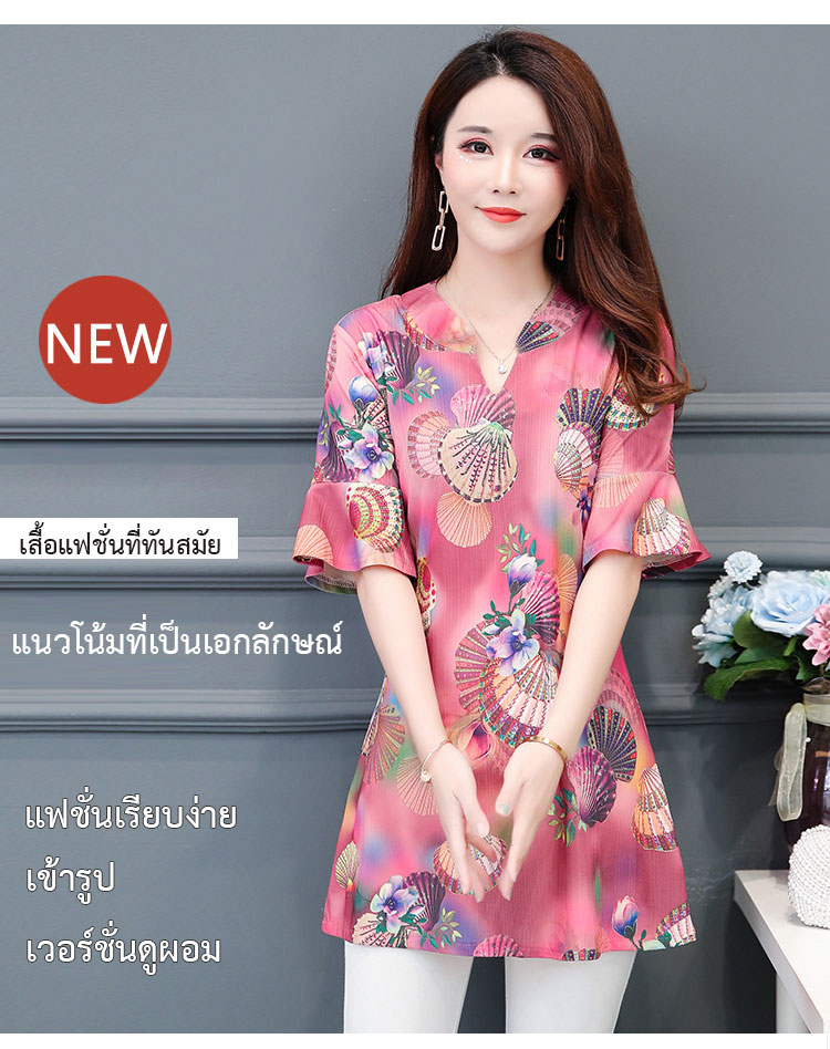 เสื้อชีฟองยาวกลางแบบหลวม