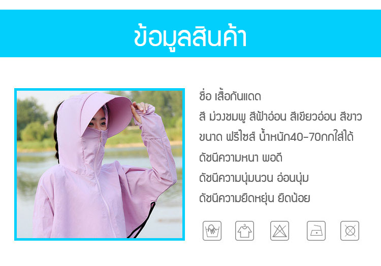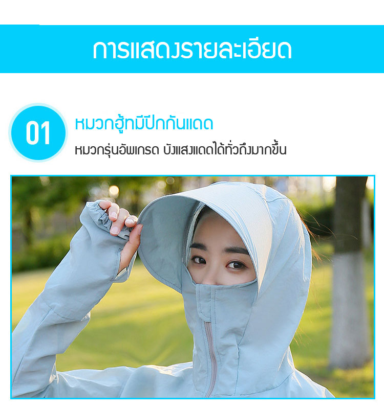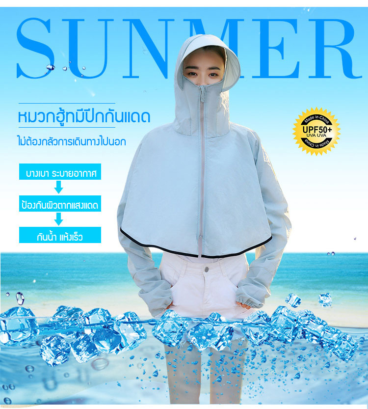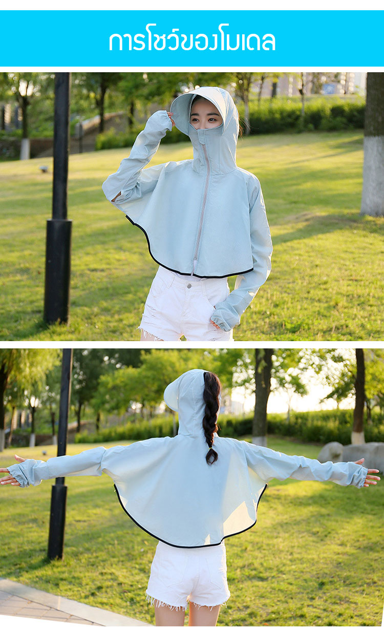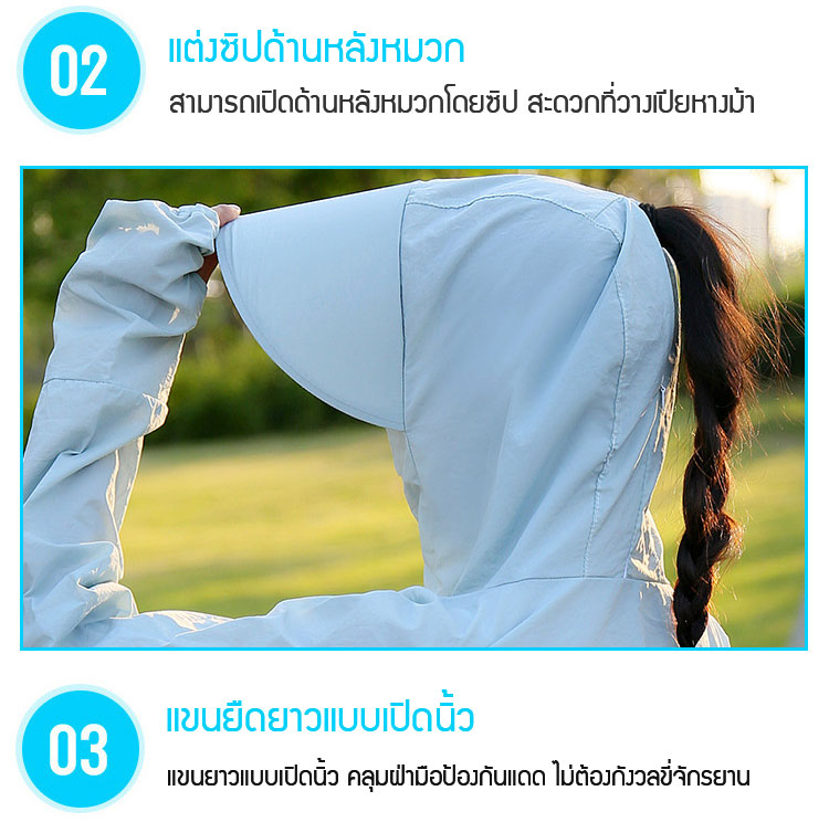 เสื้อกันแดดแขนยาวมีหมวกฮู้ทด้วย
